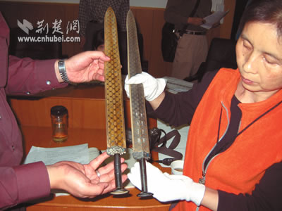 根據(jù)國家文物保護(hù)法實(shí)施條例,復(fù)制文物,須經(jīng)省級政府文物行政主管部門審核,報(bào)國務(wù)院文物行政主管部門批準(zhǔn)。荊州郢都青銅藝術(shù)研究所宣稱的“高仿真”越王勾踐劍,算不算復(fù)制?省博物館和該所各執(zhí)一詞。