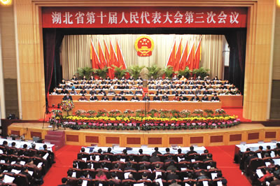荊楚網(wǎng)消息(湖北日報) 記者余凱報道:湖北省第十屆人民代表大會第三次會議昨日上午在武昌隆重開幕。肩負全省6000萬人民重托的600多名代表聚集一堂,共同繪制湖北2005年發(fā)展藍圖。