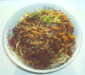 Hot Dry Noodles is a traditional snack in Wuhan with a long history of 50 years. It was said that in early 1930s,there was a person named  Libao in  Hankou District of Wuhan, who sold Cool Power Noodles and Noodles in Soup. One day ,  it was hot and there was  a lot of noodles left, he was afraid the noodles became mold and turned worse. So he boiled noodles left, took it out , dried it on the chopping board, But he splashed sesame oil over noodles because of carelessness. A good idea came to his mind that Libao mixed and stirred noodles with sesame oil, then cooled it.