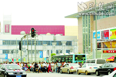 昨日上午11時(shí)前后,友誼大道路口、凱旋門(mén)廣場(chǎng)門(mén)前的兩處斑馬線上,過(guò)街的人流越聚越多,現(xiàn)場(chǎng)執(zhí)勤的數(shù)十名交管人員只得暫時(shí)棄用紅綠燈,對(duì)行人約每分鐘放行一次。中午12時(shí),記者乘公汽經(jīng)過(guò)現(xiàn)場(chǎng),從二橋武昌橋頭到岳家嘴,足足花了25分鐘。中午和傍晚的高峰時(shí)段,徐東大街出現(xiàn)大塞車,汽車“長(zhǎng)龍”從長(zhǎng)江二橋武昌引橋,一直延伸至岳家嘴。