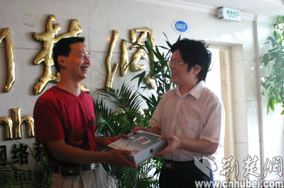 荊楚網(wǎng)副總編輯黃斌給武漢胡先生頒獎