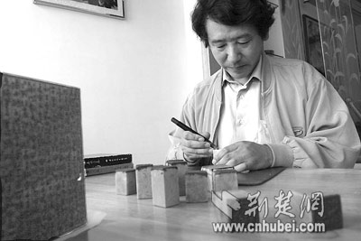 荊楚網(wǎng)(楚天都市報(bào))(記者沈秋黃泳波實(shí)習(xí)生沈雙)左手持凍石,右手執(zhí)刻刀。昨日,在記者面前,僅用了1分鐘,柴有煒便如行云流水般刻出一方甲骨文印章。