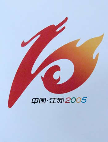 十運(yùn)會(huì)會(huì)徽于2004年4月23日在南京隆重揭曉。會(huì)徽設(shè)計(jì)以"龍騰虎躍"為主題。圖形由數(shù)字"10"變化而來(lái),既是第10屆又含十全十美之意,同時(shí)又是一個(gè)"S"的變形。"S"為體育和江蘇簡(jiǎn)稱"蘇"的頭一英文字母。整個(gè)圖形以高度概括的手法,表現(xiàn)了飛舞的龍和盤(pán)踞的虎及燃燒的體育圣火,意在以虎踞龍盤(pán)和龍爭(zhēng)虎斗的藝術(shù)形象,體現(xiàn)十運(yùn)會(huì)舉辦地江蘇文化的深厚底蘊(yùn)和地域特征以及競(jìng)技體育生龍活虎的鮮明特點(diǎn)。圖形色彩采用國(guó)旗的紅黃兩色,象征著此次運(yùn)動(dòng)會(huì)乃全國(guó)性的體育盛會(huì)。會(huì)徽?qǐng)D形的設(shè)計(jì)既注重傳統(tǒng)又立足現(xiàn)代,特別強(qiáng)調(diào)活力和動(dòng)感,以凸現(xiàn)體育健兒奮力拼搏的精神面貌,強(qiáng)化更高、更快、更強(qiáng)的奧林匹克理念。