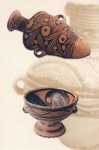彩陶尖底瓶:水器(上,高26厘米)