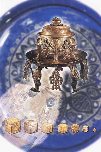 臥龜蓮花紋銀熏爐與雙鳳紋銀爐臺:熏香器(上,通高29.5厘米)