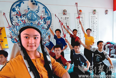 經(jīng)過3年的精心編排,武漢市黃陂區(qū)楚劇團昨日將新編大型楚劇《少年花木蘭》搬上舞臺。該劇反映少年花木蘭立志報國、熱愛家鄉(xiāng)的情懷,將成為青少年教育的生動教材。這是排練時的情景。