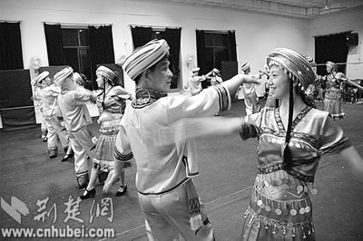 這是宜昌市西陵區(qū)窯灣鄉(xiāng)的農(nóng)民正在緊張排練巴山舞的情景。他們是經(jīng)過中南六省相關(guān)部門聯(lián)合商定,代表中南六省在本月福建省泉州市,參加中國農(nóng)民體協(xié)和國家體育總局舉辦的“全國地方特色體育展示”活動(dòng)。