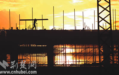昨日,省藝術(shù)館建筑工地上,工人師傅迎著朝霞在樓頂做清理工作。當(dāng)日,省藝術(shù)館主體工程封頂。據(jù)了解,省藝術(shù)館是為第八屆中國(guó)藝術(shù)節(jié)在我省舉辦而興建的重要場(chǎng)館,占地面積二十三畝,建筑總面積二萬多平方米,預(yù)計(jì)于明年底竣工。