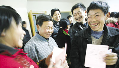 農(nóng)民工昨日領(lǐng)到我市勞動(dòng)部門預(yù)先墊付的工資。   三峽商報(bào)記者李風(fēng)  攝