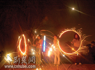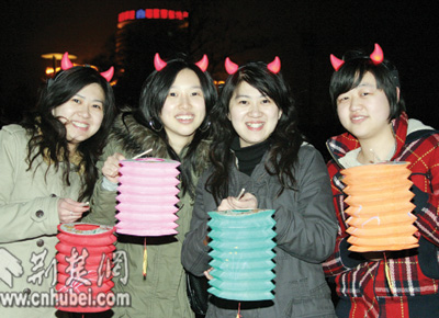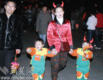 中山公園里,一對對情侶紛紛登上湖中的小舟,在燭光中許下愛情的誓言。25歲游客小敏舉著燈籠,偎依在男友的懷里,羞澀地笑著告訴記者:“今天我同意嫁給他了,這是我們金豬年最大的喜慶!