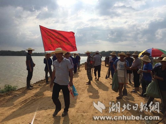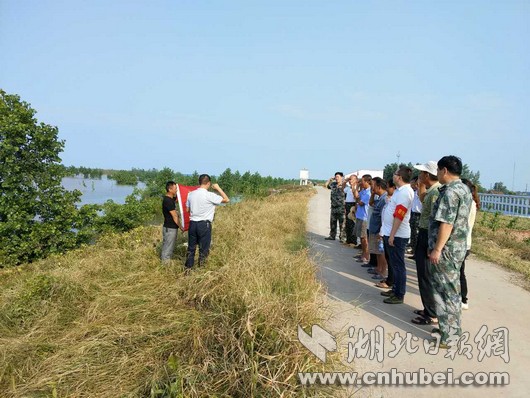 湖北日報網(wǎng)訊(全媒體記者張愛虎、通訊員敖瓊、龍鈺)“我志愿加入中國共產(chǎn)黨……”3日下午,嘉魚縣簰洲灣鎮(zhèn)簰洲灣大堤上,40多名黨員頭頂烈日,面對長江,面向黨旗,重溫入黨誓詞,學(xué)習(xí)省黨代會精神,鞏固防汛知識,落實防汛工作。