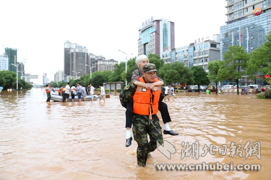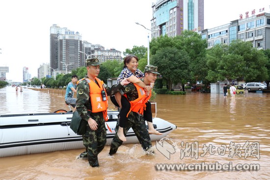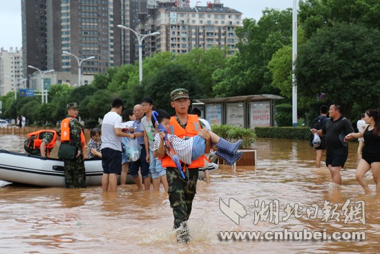 湖北日?qǐng)?bào)網(wǎng)訊(通訊員何智利、何彥卿、記者江卉)8月11日20時(shí)至8月13日12時(shí),咸寧地區(qū)普降大到暴雨,局部特大暴雨量達(dá)204.7毫米。強(qiáng)降雨導(dǎo)致城區(qū)咸寧大道、銀泉大道、玉泉街、書臺(tái)街等多條城市主干道嚴(yán)重積水,造成嚴(yán)重內(nèi)澇。8月13日13時(shí)許,武警咸寧支隊(duì)接到任務(wù)后,支隊(duì)長(zhǎng)廖光明率50名官兵,出動(dòng)車輛6臺(tái)、救援繩20根、皮劃艇3艘,轉(zhuǎn)移受災(zāi)群眾300余人,轉(zhuǎn)運(yùn)受損拋錨車輛20余臺(tái),疏通城市主干道5條。截止13日18點(diǎn),武警官兵還在一線救援。