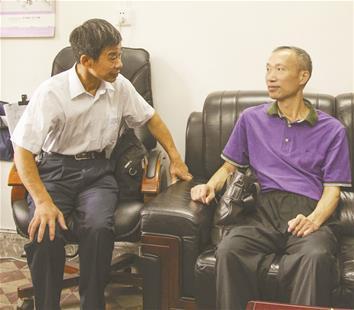 圖為:許家后人講述許白昊事跡。