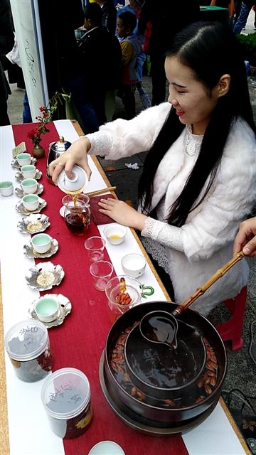 在咸寧茶友會成員逸思園生態(tài)茶葉展臺前,茶客絡繹不絕。大家品嘗瑤山紅茶、桃花尖白茶、泉谷毫峰綠茶等產(chǎn)品,相互交流品茶心得?!扒啻u茶膏,這還是第一次見到?!痹谙虒幐咝聟^(qū)溫泉茗樂堂茶樓展臺前,品嘗秘制的青磚茶膏后,不少老茶客對其濃郁的藥香氣和明顯的解酒功效贊不絕口!