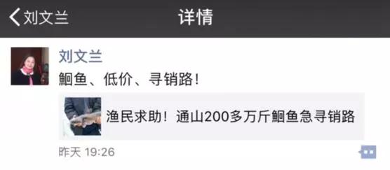 和丁小強(qiáng)一樣,中百超市副總經(jīng)理劉文蘭,也在朋友圈轉(zhuǎn)發(fā)了湖北日報的微信稿件,并配文:“鮰魚、低價、求銷路”,幫忙推廣。