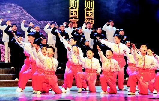 “野無遺賢,萬邦咸寧;首出庶物,萬國咸寧……”12月19日,由省委宣傳部、省教育廳、省廣播電視臺聯(lián)合主辦的“同聲誦經(jīng)典——2017湖北省‘起點閱讀·朝讀經(jīng)典’校園巡回展演活動”走進咸寧。當(dāng)天下午,在咸寧市會議中心,稚嫩的童聲、整齊的朗誦,配舞臺水墨畫的背景,讓在場的近千名中小學(xué)生如入詩畫之境。“唧唧復(fù)唧唧,木蘭當(dāng)戶織。不聞機杼聲,唯聞女嘆息……”一首《木蘭詩》讓觀眾們猶如置身于北朝的烽煙中,青年花木蘭敢于擔(dān)當(dāng)?shù)木褡屓司磁?,值得?dāng)代青少年學(xué)習(xí)借鑒。