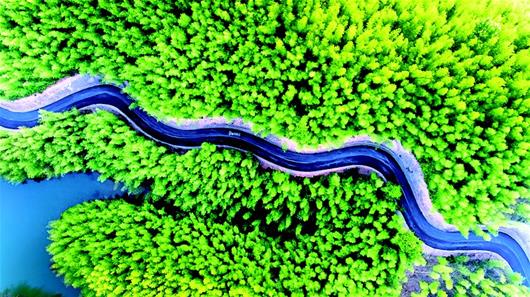 湖北日報訊 4月19日,空中鳥瞰咸寧咸安區(qū)雙溪橋鎮(zhèn)至大幕鄉(xiāng)的扶貧公路。剛剛鋪裝瀝青的公路穿過白云山萬畝竹海,被譽為當?shù)刈蠲类l(xiāng)村公路。咸安區(qū)投資1億多元,對這段近20公里的鄉(xiāng)村公路按照二級公路標準進行改造,路基寬度達到8.5米。目前,主體工程基本完工,路面刷黑施工已經(jīng)完成了一半。