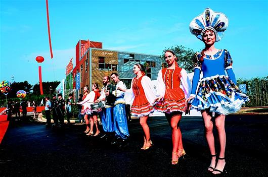 當(dāng)日,經(jīng)過一年多時間建設(shè)的“萬畝茶園·俄羅斯方塊小鎮(zhèn)”揭開面紗。茶園入口,彩球飛揚(yáng)、人流如織,俄羅斯少女翩翩起舞。走入茶園,齊腰的茶樹漫山遍野、油綠發(fā)亮,異域風(fēng)情的商業(yè)街、喀秋莎會客廳、四季茶溪花海令人眼前一亮。萬畝茶園原是羊樓洞茶場砂子嶺分場所在地,連片的茶園超過萬畝,主要用于制作青磚茶,是赤壁聞名的旅游地標(biāo)之一。重新規(guī)劃建設(shè)的萬畝茶園,預(yù)計總投資5.4億元,擺脫原有單一茶業(yè)種植,瞄準(zhǔn)建設(shè)全球首家茶文化俄羅斯風(fēng)情主題公園。