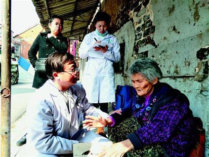 “耿婆婆好!我們來看您了。”在一座老房子前,86歲的耿良英老人正在曬太陽??吹絼⑨t(yī)生,她手指著胸口說:“我的胃病又犯了,還頭暈,正想給你們打電話呢?!眲⑨t(yī)生仔細詢問,量體溫、測血壓,看老人體溫、血壓都正常,就叮囑老人按時服藥,并讓護士小尹在老人常備藥的包裝上寫清用法,隨后兩人繼續(xù)巡診。每月固定巡診兩次,隨時接受病人及家屬咨詢,緊急情況隨叫隨到。這是他們提供簽約家庭醫(yī)養(yǎng)服務內(nèi)容的標配。