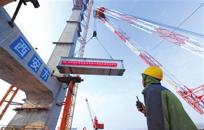 1月8日10時(shí)30分,由中鐵大橋局承建的赤壁長江公路大橋首片鋼梁成功架設(shè),標(biāo)志著大橋主橋鋼梁架設(shè)施工正式啟動(dòng),全面進(jìn)入上部結(jié)構(gòu)施工階段。