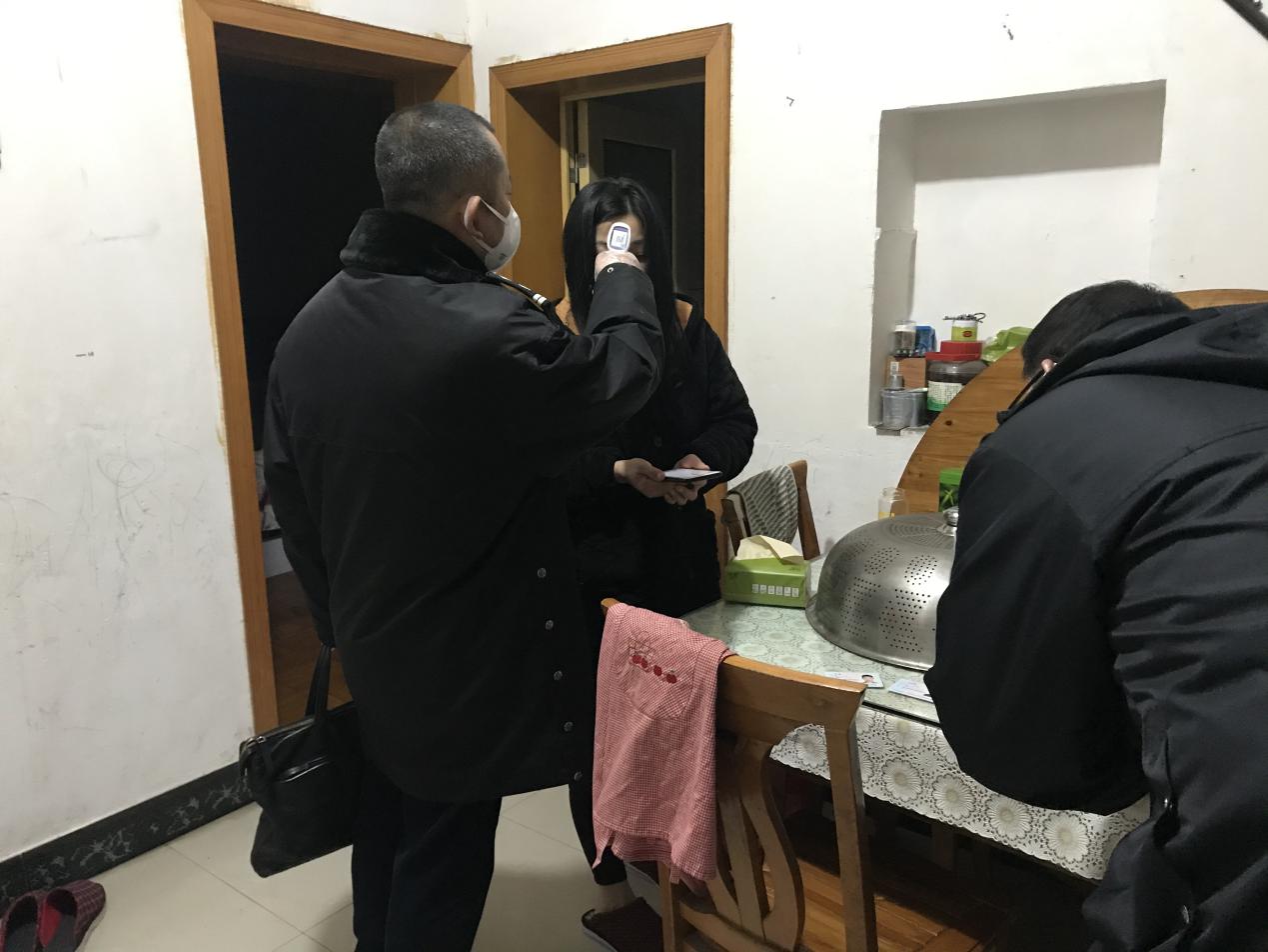 “吱呀”一聲,穿著睡衣的張女士打開了門,門口站著兩位戴著口罩,穿著制服,掛著工作牌的法院干警?!罢垎柲依镉袥]有武漢返鄉(xiāng)人員呢?我們來了解情況,也順便給您和家人量量體溫?!?/p>