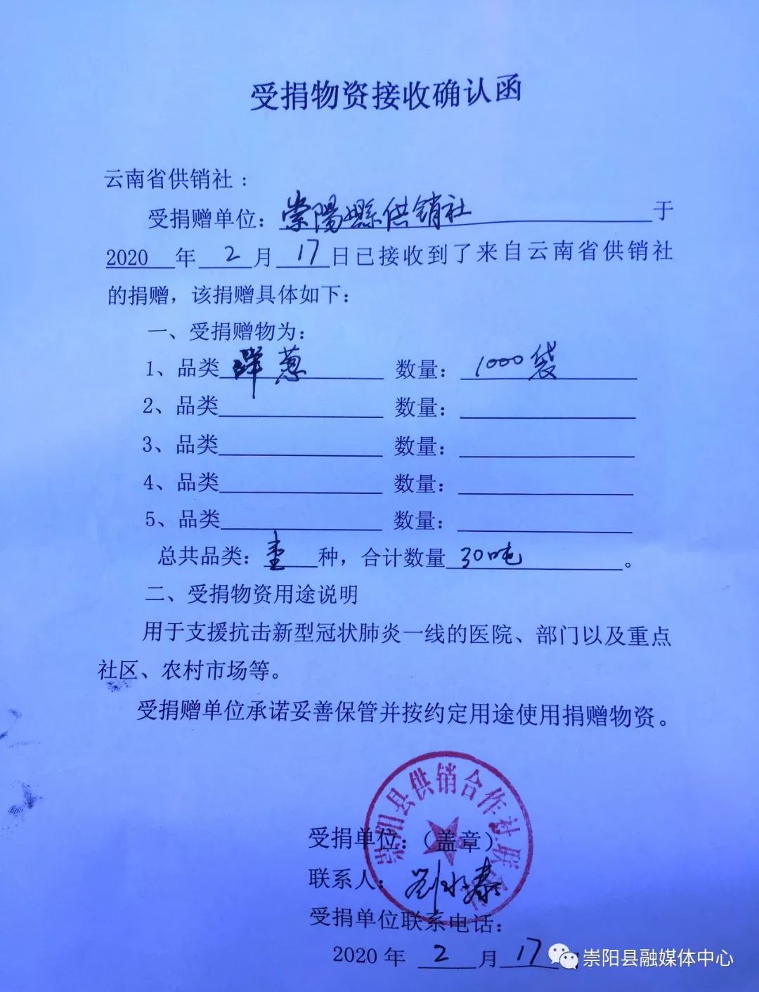 接受捐贈(zèng)的縣供銷社主任劉水泰介紹,這批物資是咸寧市供銷社協(xié)調(diào),由云南省供銷社統(tǒng)一調(diào)運(yùn)過來的,累計(jì)1000袋洋蔥總重達(dá)30噸,價(jià)值30萬元,這批物資將由縣防控指揮部作為戰(zhàn)略物資統(tǒng)一貯存,分批調(diào)配,用于支援抗疫一線的醫(yī)院、部門以及重點(diǎn)社區(qū)、農(nóng)村市場等。