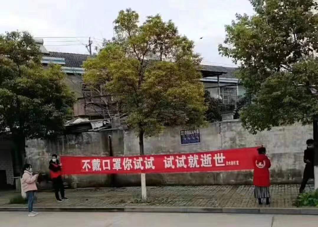 “話糙理不糙,我們都支持?!痹诟∩睫k事處白鶴農(nóng)場(chǎng)值守卡點(diǎn),村民余杰對(duì)隨處可見當(dāng)?shù)匦麄鳂?biāo)語十分理解,說可以震懾少部分不配合防疫工作的群眾。