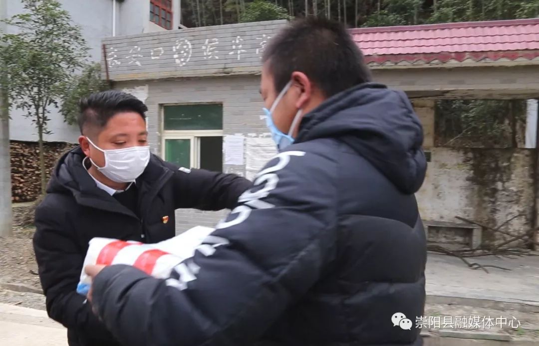 雙港村所處地理位置特殊,南面臨近石城鎮(zhèn),西面臨近赤壁市羊樓洞,守好卡點、阻斷人員流通是該村疫情防控的重中之重。每天天剛亮,陳和水就要開始一天的巡防工作,看著父親日夜操勞,兒子雷文主動“請戰(zhàn)”,幫助值守卡點、入戶宣傳防控知識,成為一名光榮的志愿者。