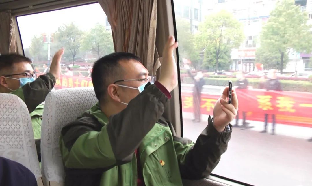 沿途,“千里逆行助崇陽 平平安安回家鄉(xiāng)”“風(fēng)雨與共 守望相助 攜手奮戰(zhàn) 感恩有你” “云南援崇醫(yī)療隊醫(yī)護人員恩情 崇陽人民永久于心”等紅色條幅分外鮮艷,街道兩旁的群眾揮舞著國旗,為支援崇陽的云南醫(yī)療隊送別。人群中,“謝謝白衣天使”“英雄一路順風(fēng)”的聲浪此起彼伏,群眾用最真誠樸實的話語表達了對白衣天使們由衷地感謝。