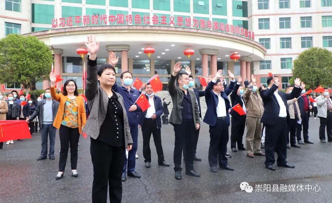 送別儀式上,杭鶯、鄭俊華等縣領(lǐng)導(dǎo)為全體云南醫(yī)療隊隊員獻上鮮花。隨后,杭鶯向云南醫(yī)療隊隊長董昭興頒授印有“援崇抗疫彰大愛 彩云之南皆英雄”錦旗并合影留念。