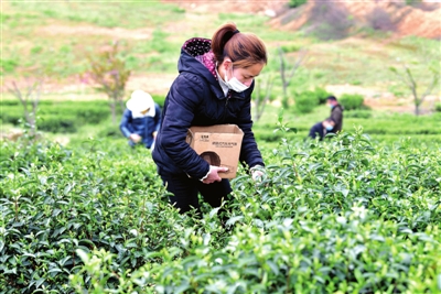 據(jù)了解,該基地由在外創(chuàng)業(yè)回鄉(xiāng)人員于2015年興建,占地500余畝,目前已逐步成園。基地自3月6日復(fù)工以來,日平吸納當(dāng)?shù)貏趧恿?0余人次采茶。