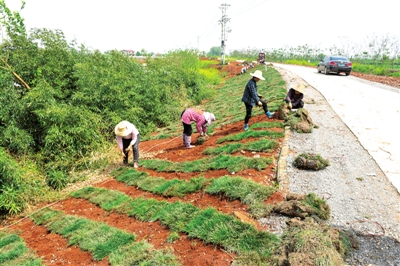 4月1日,渡普鎮(zhèn)斧頭湖加固工程現(xiàn)場,工人們正在為加固的斧頭湖大堤植草皮。項(xiàng)目負(fù)責(zé)人張慶介紹,斧頭湖大堤植草皮標(biāo)志著歷經(jīng)2年的斧頭湖加固工程已進(jìn)入尾聲。