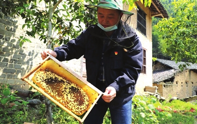 在山村村民的房前屋后,隨處可見蜂箱,嗡嗡的蜜蜂為山村百姓唱著甜蜜幸福的歌。