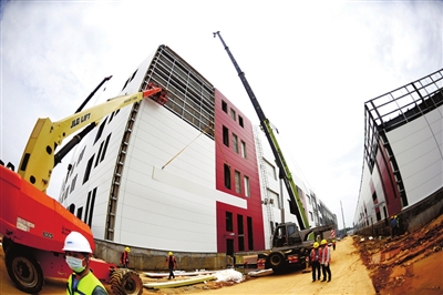 25日,赤壁市維達(dá)力實業(yè)(三期)項目正抓緊建設(shè)。該項目位于中伙鋪工業(yè)園,總投資35億元,占地面積163畝,主要生產(chǎn)微晶玻璃、柔性屏,是赤壁市重點在建項目之一。目前正在進(jìn)行廠房墻面建設(shè)和設(shè)備安裝調(diào)試,預(yù)計7月全面建成投產(chǎn)。 咸寧日報全媒體記者 袁燦 攝