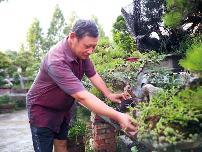 “興趣是最好的老師!堅(jiān)持才能成功!”這句話應(yīng)在盆景“達(dá)人”孫勝望的人生之路上是最好的詮釋。在部隊(duì)當(dāng)兵時(shí)開始擺弄盆景至今,孫勝望幾十年如一日自學(xué)盆景技藝,并從一位“盆景大戶”蛻變成一位響當(dāng)當(dāng)?shù)摹芭杈按髱煛薄?/p>