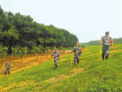 “這個(gè)插上紅旗做標(biāo)志的地方是地質(zhì)鉆口,雖已封口,但每次巡堤一定要來檢查,看周圍是否有異?!边@是朱天志給新上堤的“90后”防汛突擊隊(duì)員唐文講巡堤技巧和相關(guān)要領(lǐng)。