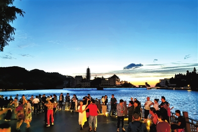 8月16日,記者在九宮山風景區(qū)看到,云中湖畔游客如潮。各大賓館、酒店客房一鋪難求,各大餐館生意紅火。據了解,在“與愛同行,惠游湖北,樂享咸寧”活動的推動下,僅8月9日到16日,九宮山接待游客突破4.4萬人次,同比增長250%,創(chuàng)歷史最高紀錄。