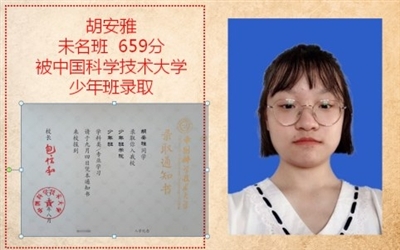 8月12日,從省招辦傳來喜訊:來自全國各地的129名“天才少年”來合肥參加中國科學(xué)技術(shù)大學(xué)“少年班”復(fù)試的角逐,共計錄取48名考生。湖北僅錄4人,咸高獨占3人!余亦可、陳龍、胡安雅同學(xué)經(jīng)過嚴(yán)格挑選,脫穎而出,被中科大“少年班”錄??!吳書恒同學(xué)被中科大“少創(chuàng)班”錄?。」?、劉瑞同學(xué)被空軍航空大學(xué)錄?。≈茏蛹?、饒冶、朱紫珩、趙子廉、施熠被清華大學(xué)、上海交大、復(fù)旦大學(xué)、浙江大學(xué)錄取。