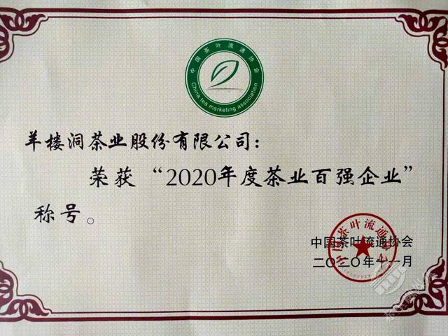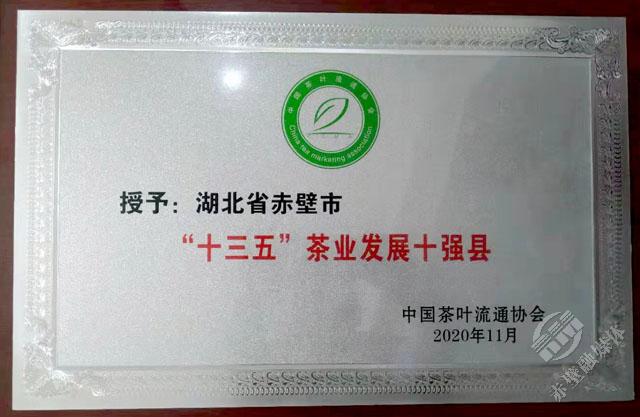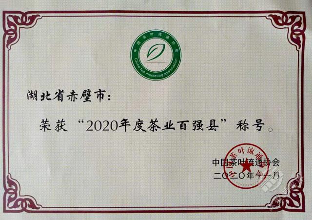 11月18日,第十六屆中國(guó)茶業(yè)經(jīng)濟(jì)年會(huì)正式發(fā)布了2020中國(guó)茶葉行業(yè)調(diào)查的最終結(jié)果,對(duì)年度中國(guó)茶業(yè)優(yōu)秀企業(yè)、優(yōu)秀縣域進(jìn)行授牌表彰。赤壁市榮獲“十三五百強(qiáng)縣市十強(qiáng)”和“2020年度茶業(yè)百強(qiáng)縣”稱號(hào),其中“十三五百強(qiáng)縣市十強(qiáng)”中赤壁市是湖北省唯一入選的縣市,在“2020年度茶業(yè)百強(qiáng)企業(yè)”評(píng)選中,羊樓洞茶業(yè)股份有限公司成為咸寧市唯一入選的企業(yè)。