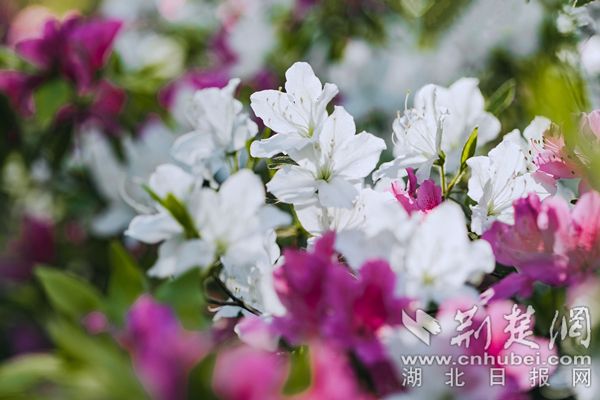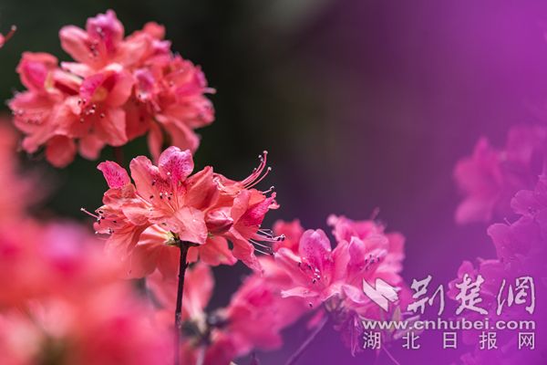 荊楚網(wǎng)(湖北日?qǐng)?bào)網(wǎng))訊(通訊員陳長(zhǎng)麗)最美人間四月天,“花中西施”杜鵑接力登場(chǎng)成為春花主力。在武漢植物園,5萬(wàn)株杜鵑恣意開(kāi)放,園內(nèi)各處杜鵑簇?fù)碇︻^,織錦堆繡,漫山紅遍,美不勝收。園區(qū)重新修繕提升了杜鵑園霧噴景觀,云霧繚繞中,萬(wàn)千杜鵑燦若云霞若隱若現(xiàn),宛若人間仙境。