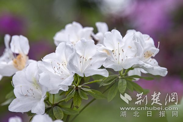 杜鵑花色艷麗,武漢植物園的杜鵑除紅色、紫色、粉色、白色等單色外,還有綠色杜鵑和復(fù)色杜鵑花。從國(guó)外引進(jìn)的綠色杜鵑品種“綠色光輝”,花朵小巧玲瓏,色如碧玉,十分罕見(jiàn)。復(fù)色杜鵑“皇冠”花朵白粉相間,粉紅色鑲邊,素雅又不失顏色,一掃杜鵑的艷麗姿態(tài),既清新又迷人。