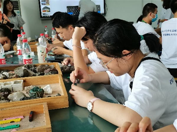 在五天營期里,圍繞“上天入地、下海登極”的主題,營員們在地球科學學院、資源學院、海洋學院、材料與化學學院參與了巖石礦物觀察、化石修復、海洋測量儀器操作、珠寶手串和人造琥珀、葉脈書簽和有機唇膏制作等多樣的科技活動和實驗。