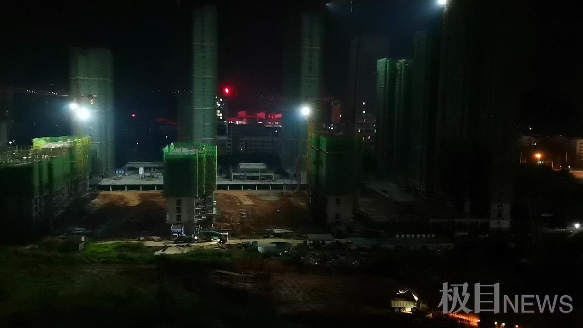 “你看,這是我在凌晨一點拍的視頻,工地依舊燈火通明,施工噪聲非常大!”在李女士的手機中,極目新聞記者看到她于7月30日晚0:58分用手機拍攝的視頻,視頻中顯示,該建筑工地距李女士居住小區(qū)僅一墻之隔,多輛工程車、挖機在不間斷施工作業(yè),噪音十分明顯。
