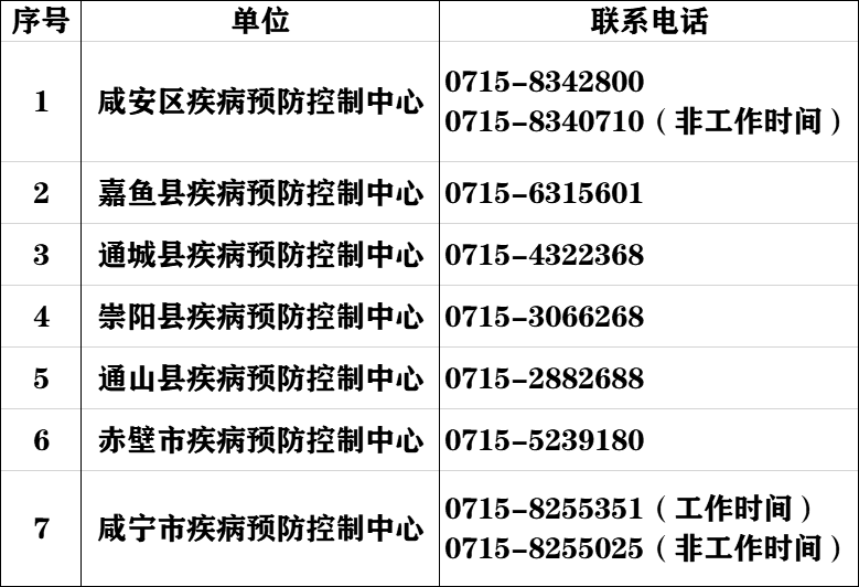 咸寧市各地疾控中心咨詢(xún)熱線
