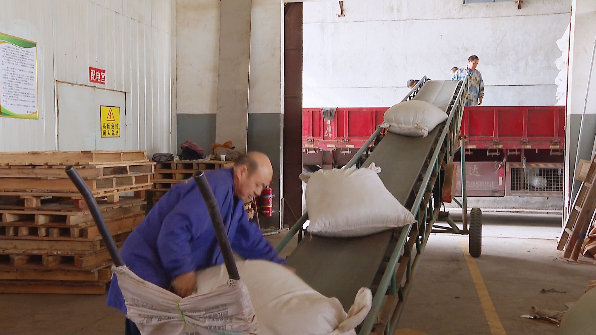 深秋時(shí)節(jié),天氣日漸寒冷,但位于大坪鄉(xiāng)下畈村的雙獅茶業(yè)生產(chǎn)車(chē)間卻暖意融融,數(shù)十位工人正忙著用小推車(chē)將一袋袋茶葉送上傳送帶,裝進(jìn)物流運(yùn)輸車(chē)車(chē)廂。