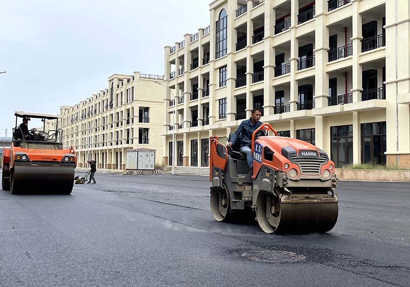 10月18日,浮山街道浮山社區(qū)黨群服務(wù)中心附近的路面刷黑施工現(xiàn)場(chǎng),瀝青攤鋪機(jī)和壓路機(jī)來回穿梭。隨著施工的推進(jìn),一條寬闊平坦的瀝青路面呈現(xiàn)在眼前。