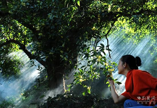 “有風(fēng)香十里,無風(fēng)十里香。”香城無處不飛花,幽香一縷醉萬家,群芳斗艷爭(zhēng)春色,唯我獨(dú)鐘桂花茶。