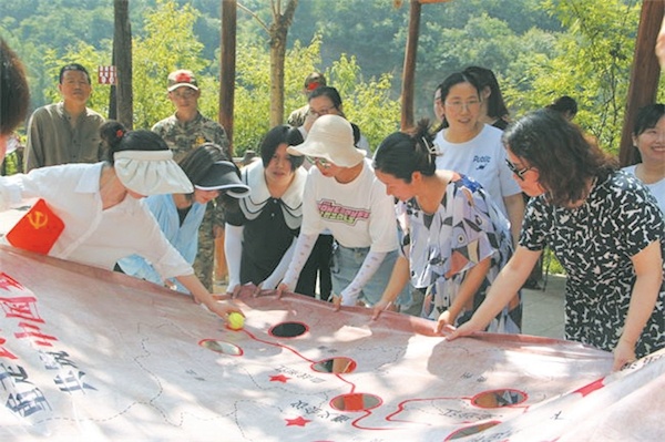 為迎接七一建黨節(jié)和黨的二十大,6月25日,市東風(fēng)小學(xué)組織開展紅色團(tuán)建活動。圖為黨員老師在觀摩紅軍長征路線圖。