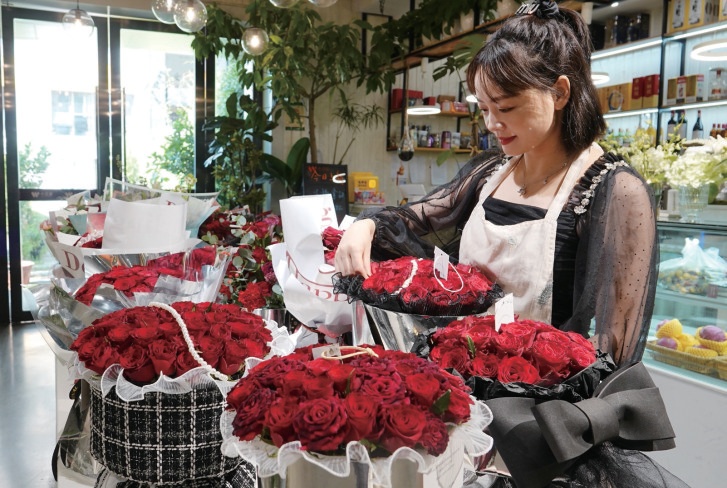 據(jù)這些花店老板介紹,訂花群體普遍為二三十歲的年輕人,送花給戀人,增加儀式感。同時(shí),也有一些女性到花店自行購買鮮花擺放在家里,增添浪漫節(jié)日氛圍。
