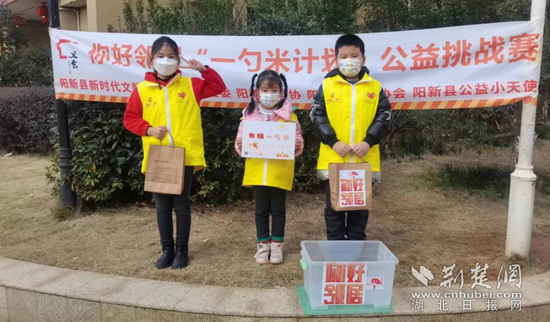12日,由陽新縣新時代文明實(shí)踐中心、團(tuán)縣委和縣義工協(xié)會公益小天使共同締造“你好,鄰居”一勺米活動在山上綠洲小區(qū)開展,10組親子家庭敲開鄰居門,募集一勺米。一個個友善微笑,一聲聲親切問候,足以拉近鄰里間的距離,也讓公益小天使親歷體驗(yàn)一次“百家米”傳承文化美德。